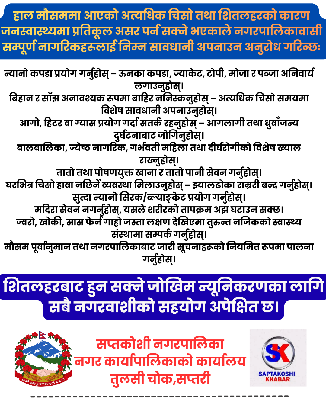 प्रकाशित कुनै सामग्रीबारे कुनै गुनासो, सूचना तथा सुझाव भए हामीलाई saptakoshisanchar@gmail.com मा पठाउनु होला । धन्यवाद ।