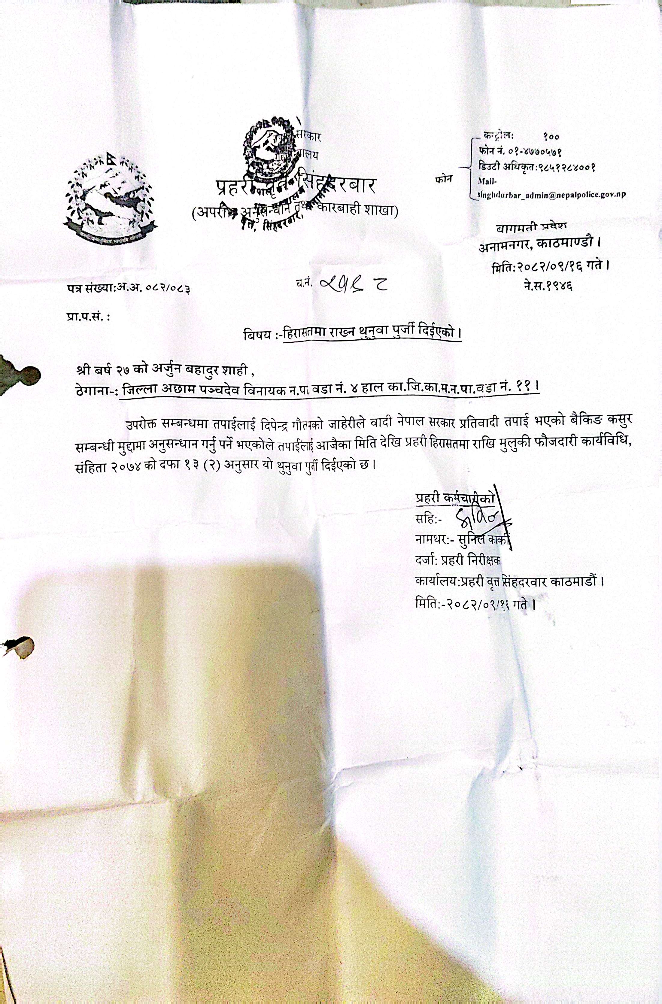 घटनास्थलमा पुगेको पश्चिम कुशहाका सिनियर दिलिप चौधरीको टोलीले प्रारम्भिक जाँचपछि अर्नाको पोस्टमार्टम गरि, खाल्डो खनेर गाडेको छ। चौधरीले यो घटना अस्वाभाविक भएको उल्लेख गर्दै, यसबारे थप अनुसन्धान भइरहेको जानकारी दिएका छन्।